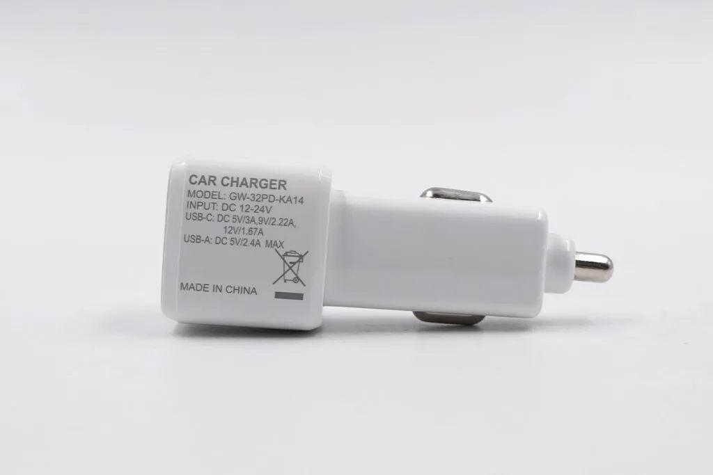 中正仁和32W 1A1C车载充电器拥有双输出接口,分别是一个用于给数码产品作主力供电的USB-C PD快充输出口,一个用于给行车记录仪或数码产品供电的副输出口。车充内部带有LED,通电后会从接口透出蓝光,便于用户在黑暗环境中寻光插入。