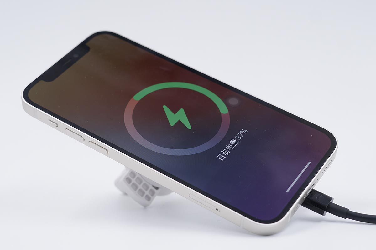 USB-C支持20W输出,实测为iPhone 12充电功率达到8.97V 2.18A 19.62W,成功握手iPhone 12 20W快充,满足30分钟充入50%的性能需求,为iPhone 12快速恢复电量。