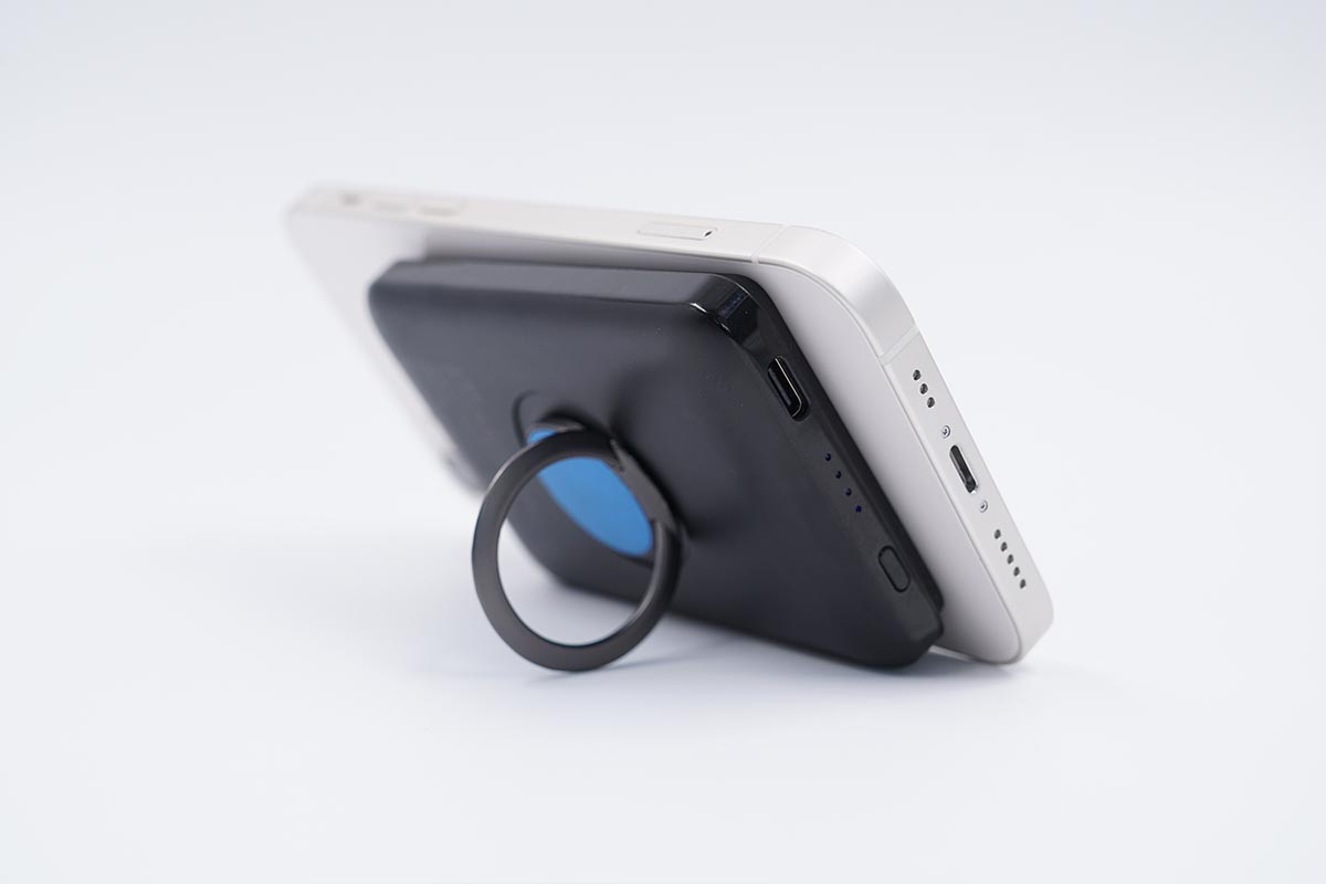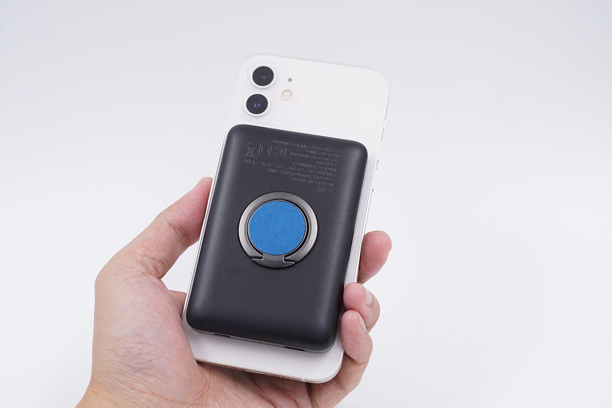 手机放在充电宝上面后,通过磁力自动吸附对准线圈,进行高效无线充电。