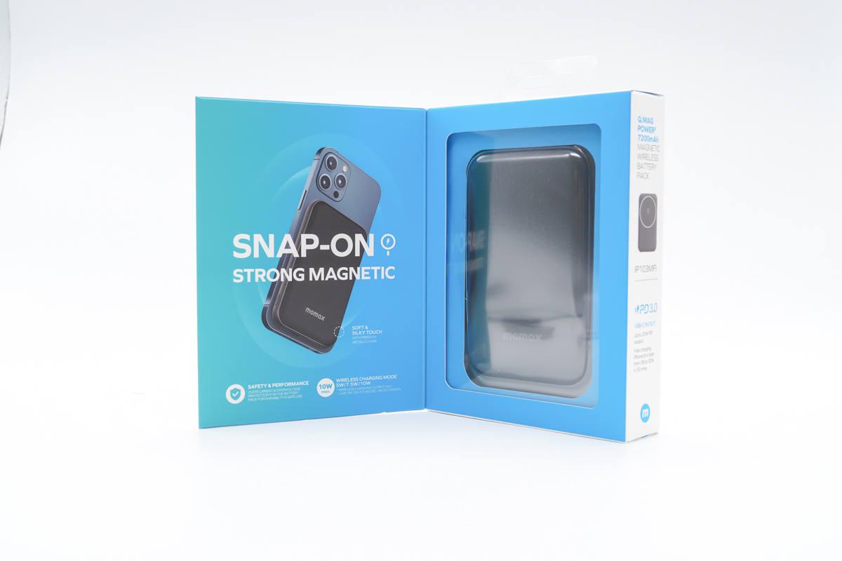 此次MOMAX摩米士新款磁吸无线充电宝共推出了黑白两种配色,此次上手的是黑色版本。从包装盒的正面可以直接看出产品的外观形态,左上角是熟悉的MOMAX摩米士品牌Logo。