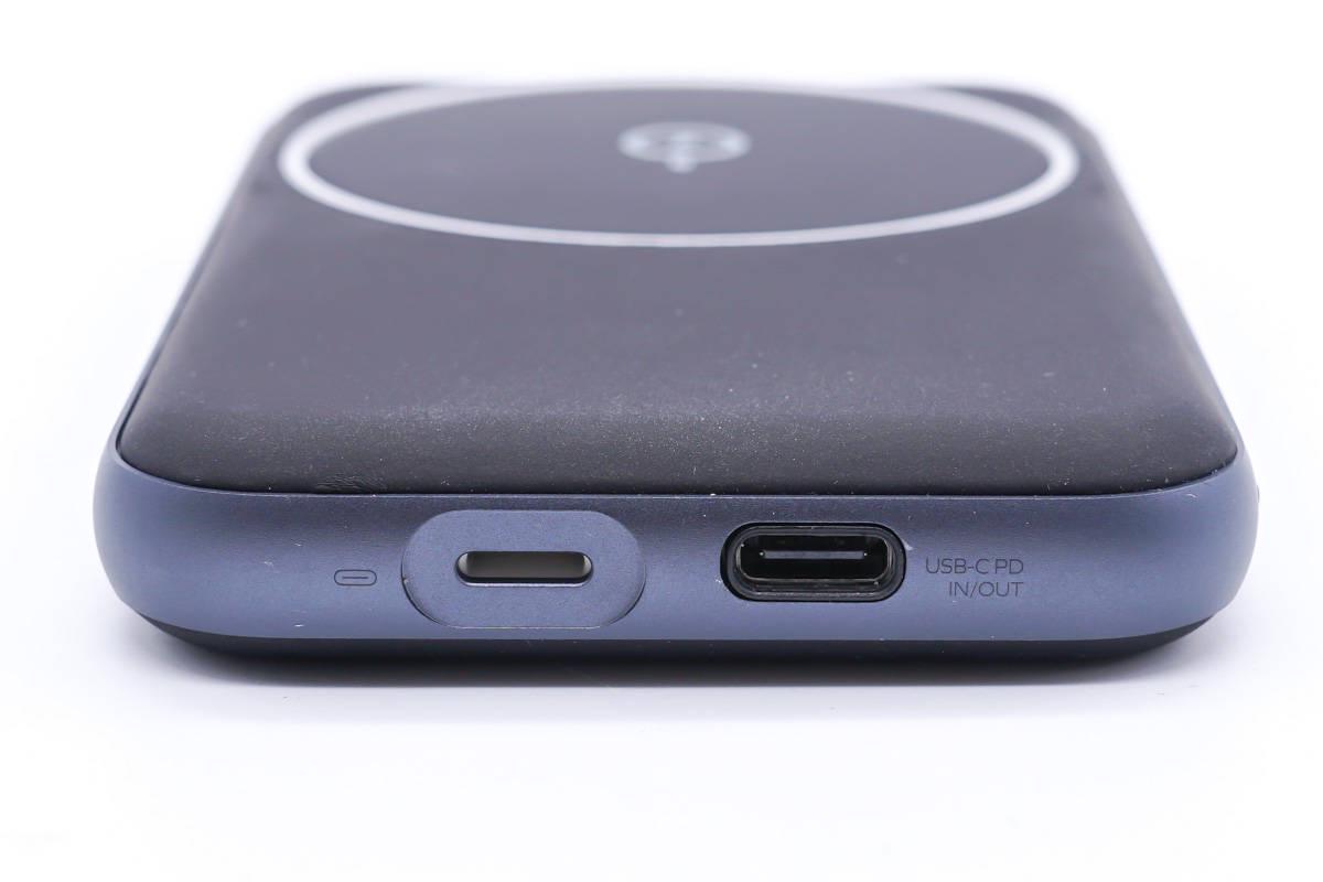 充电宝的侧面配备了USB-C双向快充接口,支持18W输入与20W输出,左侧配备的Lightning输入接口则支持5V2.4A输入,Lightning接口通过了苹果官方的认证,即MFi。