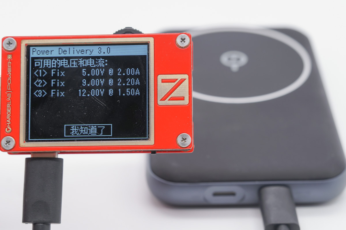 当USB-C触发PD快充输出时可以提供5V2A、9V2.2A、12V1.5A三个固定电压档位,即最高20W输出功率。