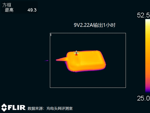1小时后采集到充电宝表面的最高温度为49.3℃。
