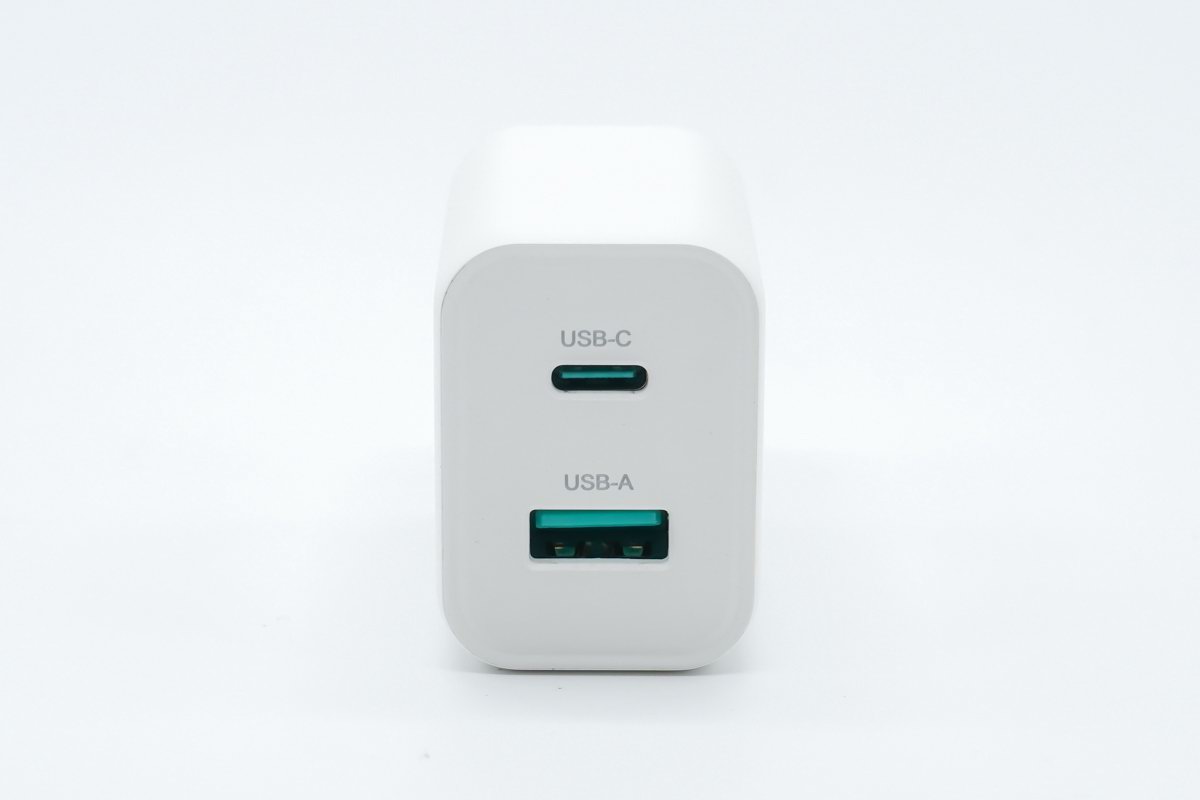 斯泰克33W 1A1C充电器全白色阻燃壳体,体积上与苹果18W充电器接近,采用了双输出口配置设计,绿色USB母座是斯泰克品牌一直沿用的快充标识,证明两个接口都支持快速充电,1A1C万金油搭配适用于主流PD快充数码设备的同时也兼容其他旧式设备使用。