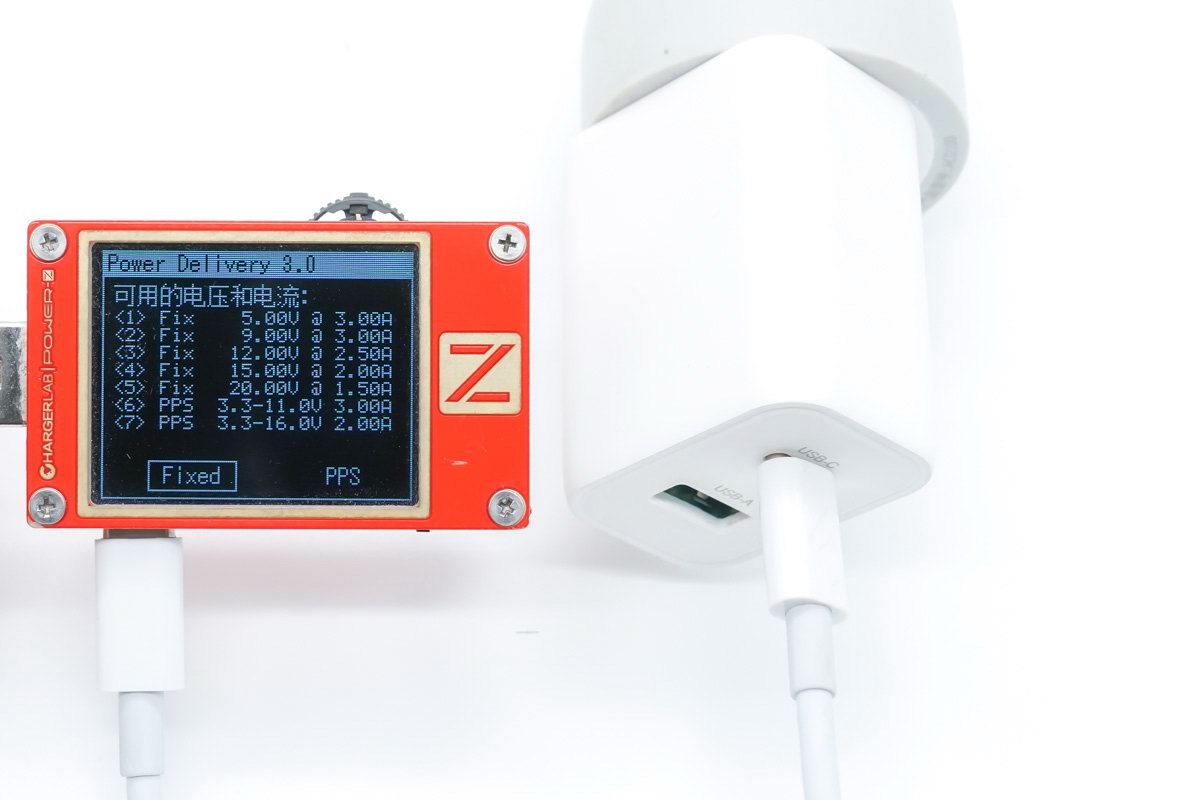 使用POWER-Z KT002 USB测试仪读取USB-C PDO报文,基于PD3.0快速充电标准开发,支持5V3A / 9V3A / 12V2.5A / 15V2A / 20V1.55A五个固定电压档,另外包含3.3-11V3A / 3.3-16V2A两组PPS电压子集。