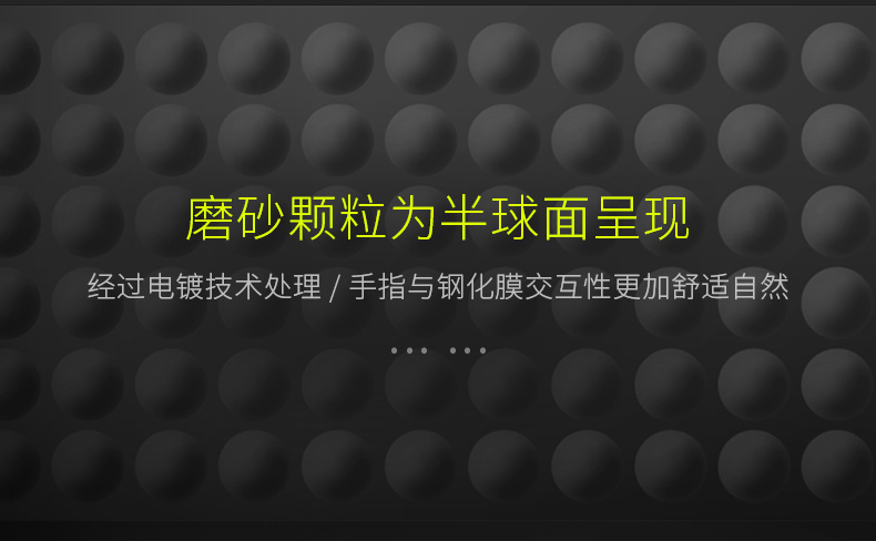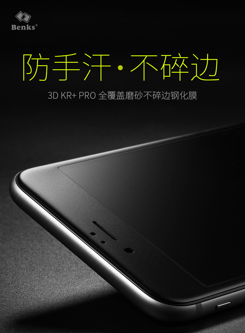 它采用软边全覆盖+磨砂的工艺,厚度适中,为0.23mm,有黑白两种颜色可选,首批适配机型为iPhone6s/6sPlus/7/7Plus。更细腻的磨砂工艺使雾度仅有20%,磨砂玻璃表面经过了电镀工艺,相比磨砂表面原生的顺畅,电镀工艺使手感增加了一丝顺滑。钢化膜通过高温淬炼,具有良好的防爆抗冲击的特性,能为手机屏幕抵挡一次致命伤害。