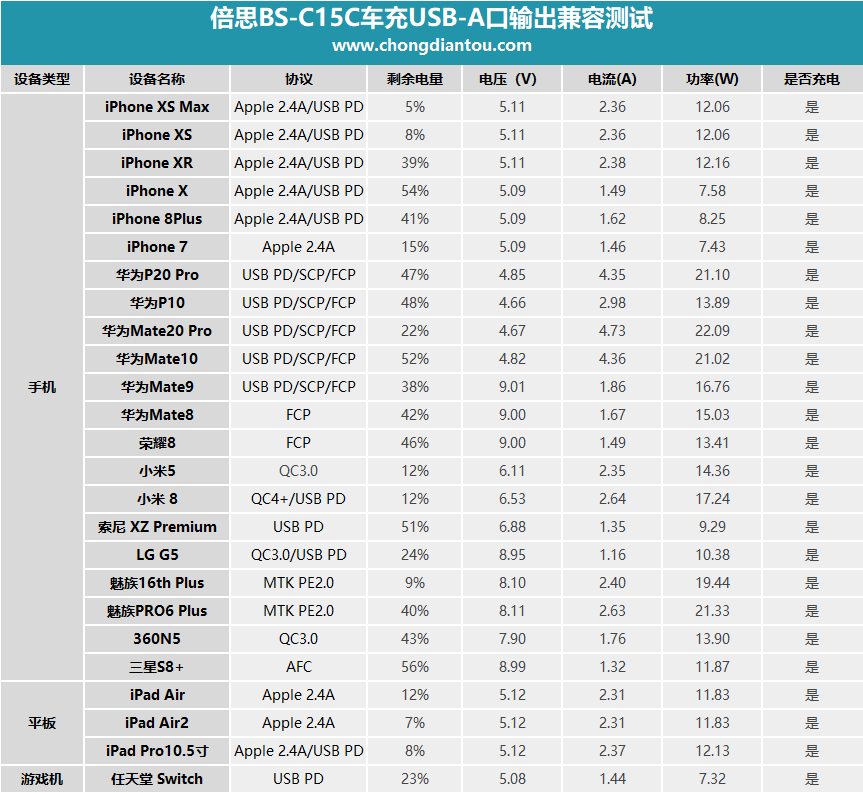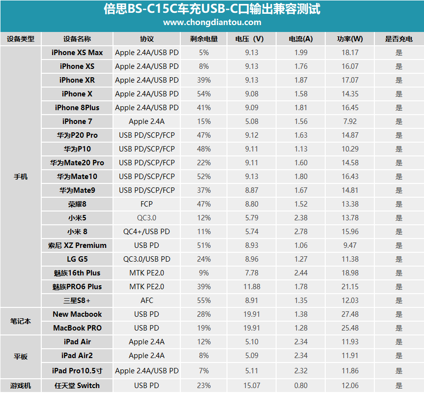 小编还测试了其他款式数码设备,具备快充的数码设备均能握手成功,进入快充,倍思PPS智能车充USB-C口兼容性不错。