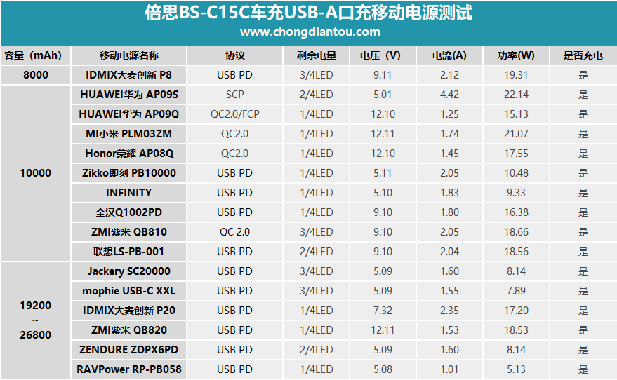 充华为HUAWEI华为 AP09S移动电源,电压5.01V,电流4.42A,功率22.16W,握手SCP快充。
