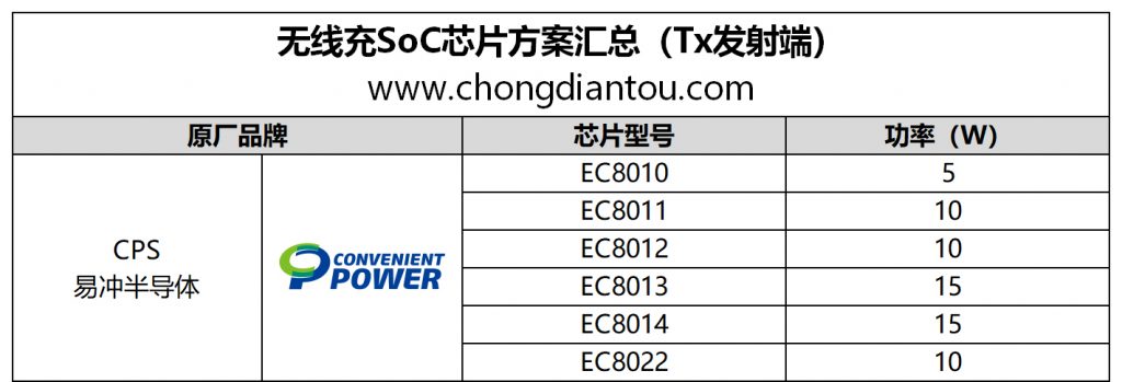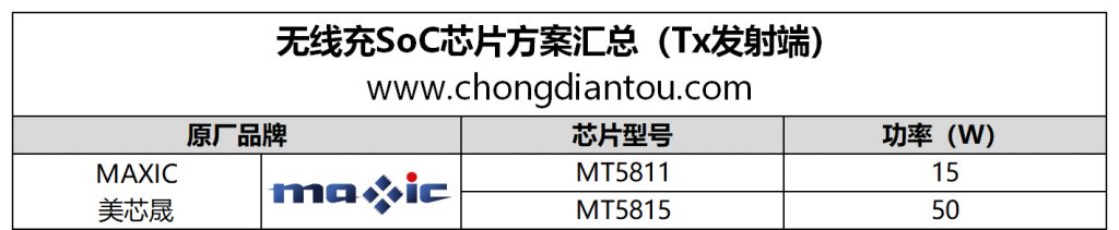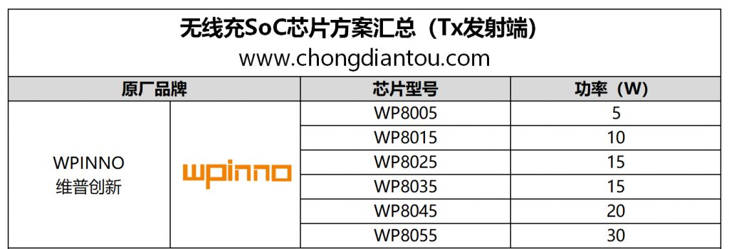 四、无线充SoC芯片方案及厂家的具体信息如下: