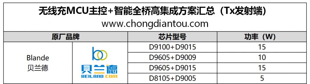 贝兰德研发设计的WPC QI认证高性价比D9605/D9600/D9103/D9100/D8105无线充电发射解决方案IC以及D9009 /D9015/ D9012高集成全桥系列IC ,支持5W 7.5W 10W 15W PD20W功率,已广泛应用于手机、医疗、智能家居、数码产品、汽车电子、家庭办公、机场和餐饮连锁店无线充电平台等诸多领域,公司拥有多项发明及软件著作权版权,公司研发团队在坚持自主研发基础上,积极参与国际无线充电技术交流和探讨,为无线充电事业的发展和推广做出自己的努力。