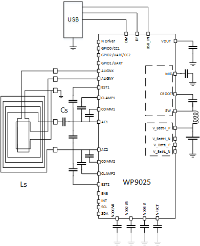 WP9025 全集成无线充电TX/RX双向发射接收芯片,单芯片集成了无线充电TRX功能 TX 10W、RX 30W,以及集成电池充电管理24W(12V/2A) 功能。功能强大:拥有丰富的D+,D-协议支持 (可实现: QC协议,MTK协议, OPPO协议, VIVO协议, Nubia协议,华为SCP,FCP协议,用户自定义协议等),单芯片集成Type-C pd 功能。单芯片集成单电池低压直充的功率,和控制模块,单芯片支持 30W (15V/2A) 电池放电。搭载32K FLASH,板端升级程序。采用封装为:WLCSP-87 44 移动终端或 QFN-48 66 外设。