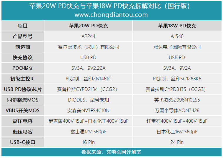 最后通过一张表格汇总苹果原装20W PD快充与18W PD快充的主要区别,方便大家对比查看。