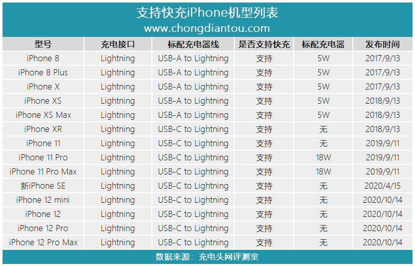 据充电头网最新的统计数据显示,目前苹果已有14款支持USB PD快充的手机,其中官网在售的7款机型均已不再赠送充电器,这让20W PD快充配件的市场需求得到极大释放,市场空前广阔。
