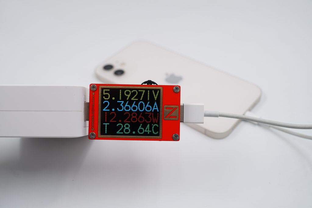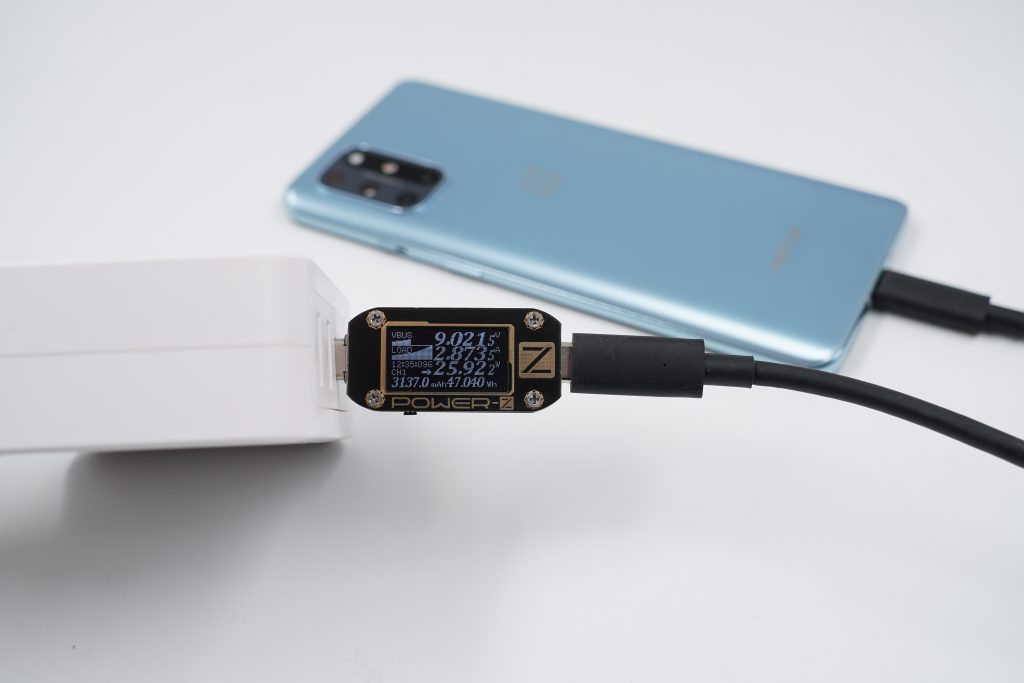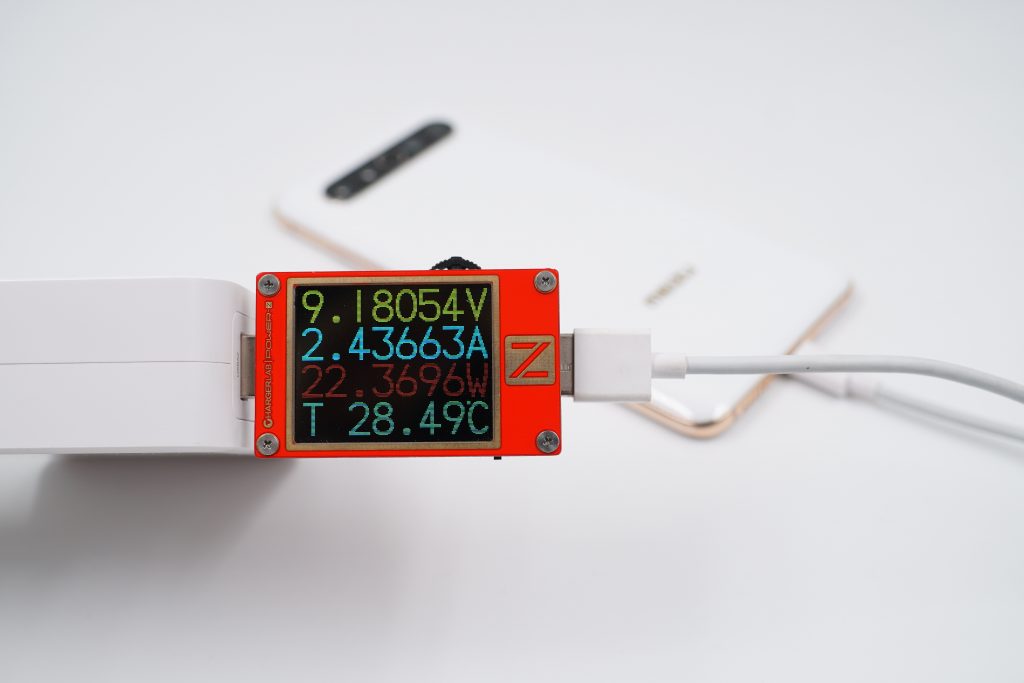 使用USB-A1为小米9充电,功率为4.92V 1.49A 7.38W;使用USB-C2为三星S20 Ultra充电,功率为4.99V 1.78A 8.93W