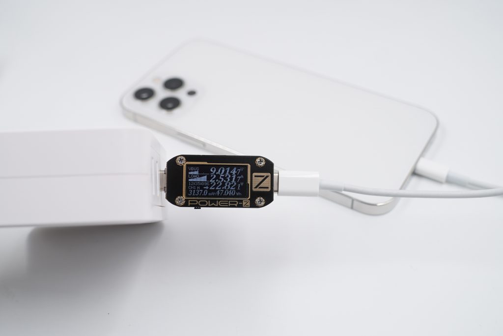 使用充电器的USB-C接口为iPhone 12 Pro Max充电,功率为9.01V 2.53A 22.82W。