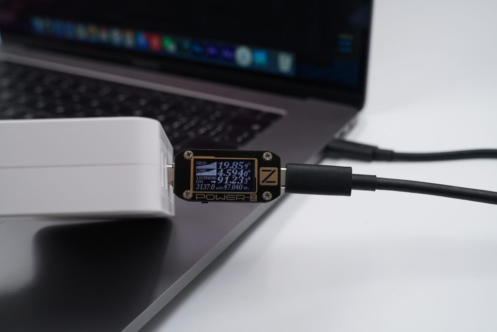 使用USB-A1为小米9充电,功率为8.94V 1.86A 16.69W;使用USB-C1为MacBook Pro16充电,功率为19.51V 4.52A 88.2W