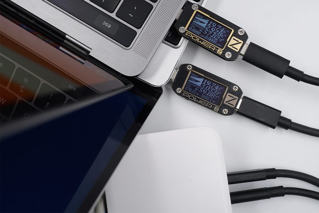 使用USB-C1为MacBook Pro13充电,功率为19.74V 2.92A 57.82W;使用USB-C2为华为MateBook充电,功率为19.74V 3.03A 59.88W。
