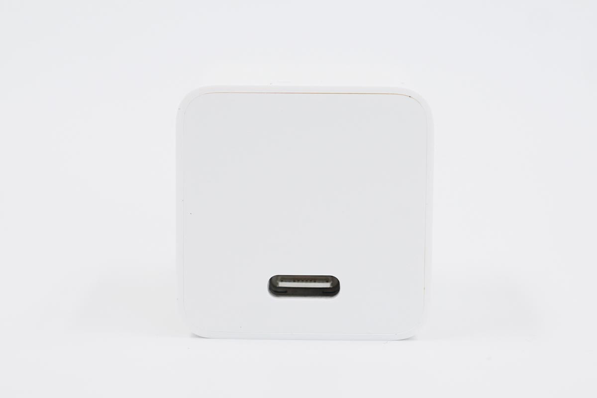 苹果20W PD充电器延续了18W PD充电器的造型风格,整体机身较为方正,边角处过渡圆润,上下则做了削平的处理,且插脚不可折叠。