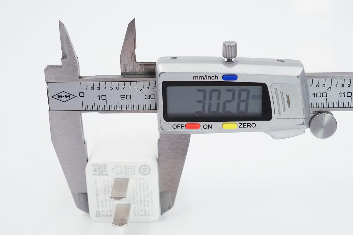 宽度约为30.28mm,充电器的长宽几乎相同。