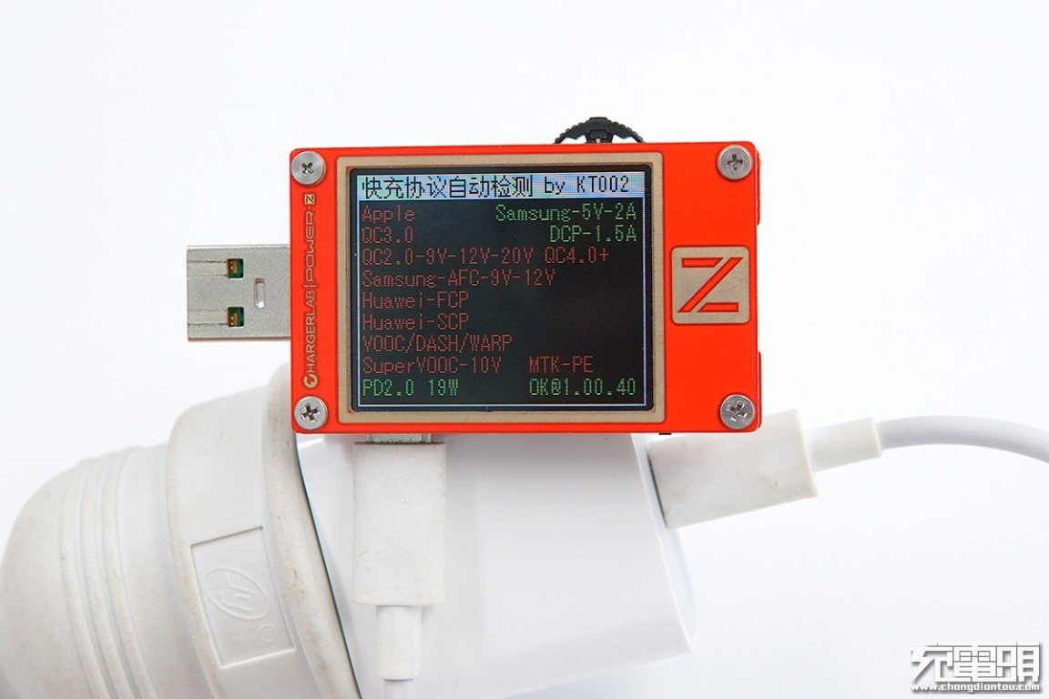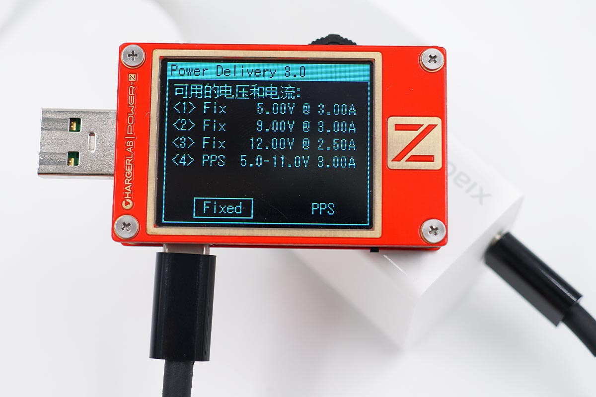 使用power-Z KT002读取充电器的快充协议,实测支持PD、PPS、Apple2.4A、QC2.0、QC3.0、QC4+、AFC以及FCP等快充协议。