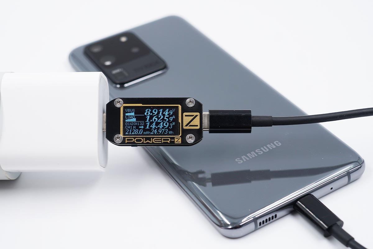 使用充电器为三星S20 Ultra充电,功率为8.95V 3.00A 26.86W。