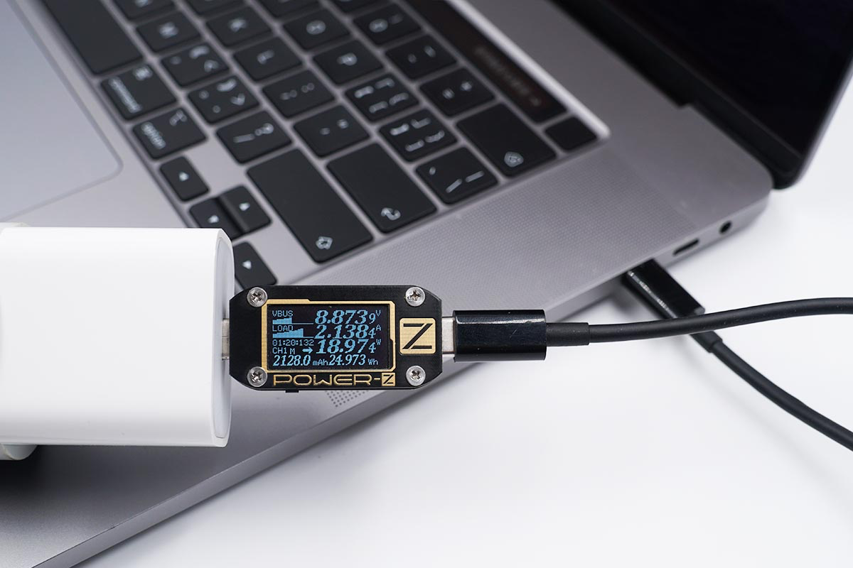 使用苹果20W PD充电器为MacBook Pro充电,功率为8.87V 2.13A 18.97W。
