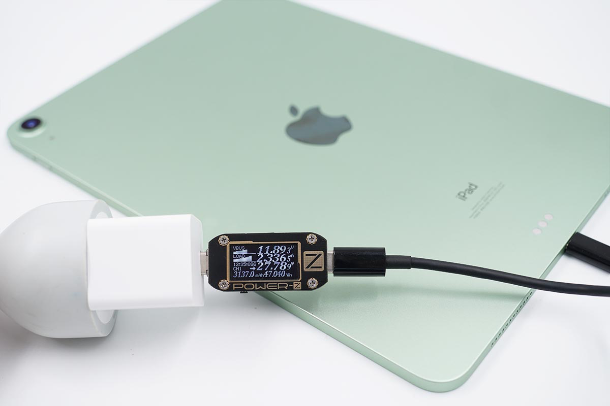 使用充电器为iPad Air 4充电,功率为11.89V 2.33A 27.78W。