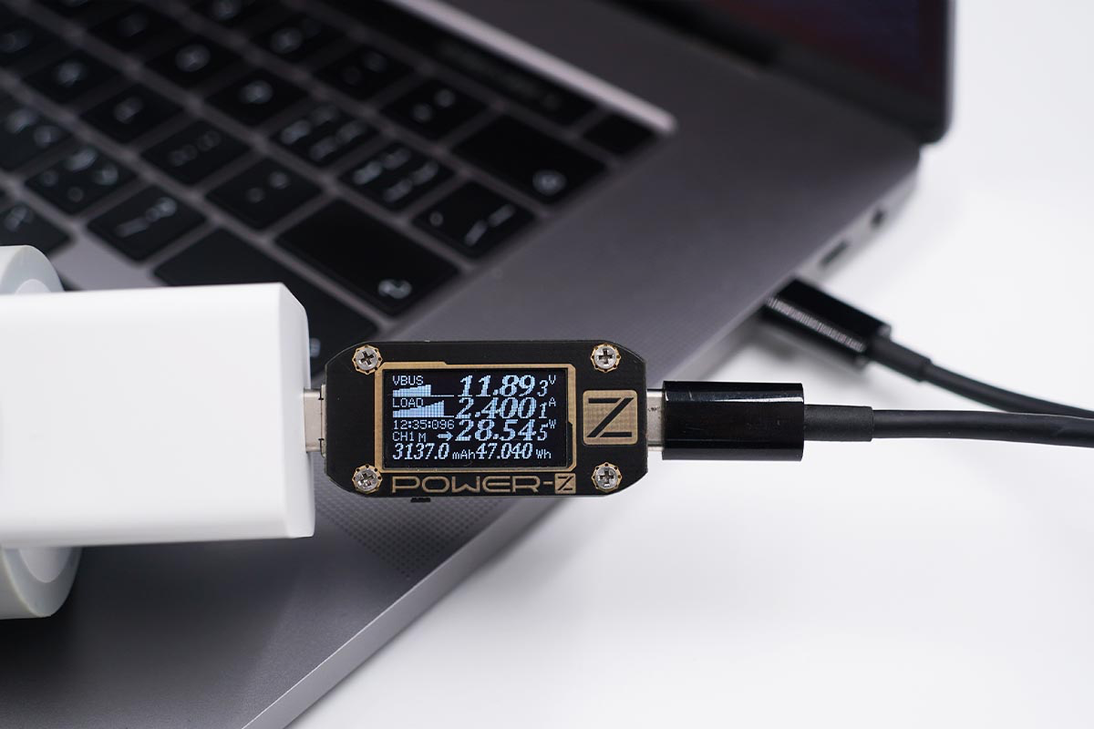 使用充电器为MacBook Pro充电,功率为11.89V 2.40A 28.54W。