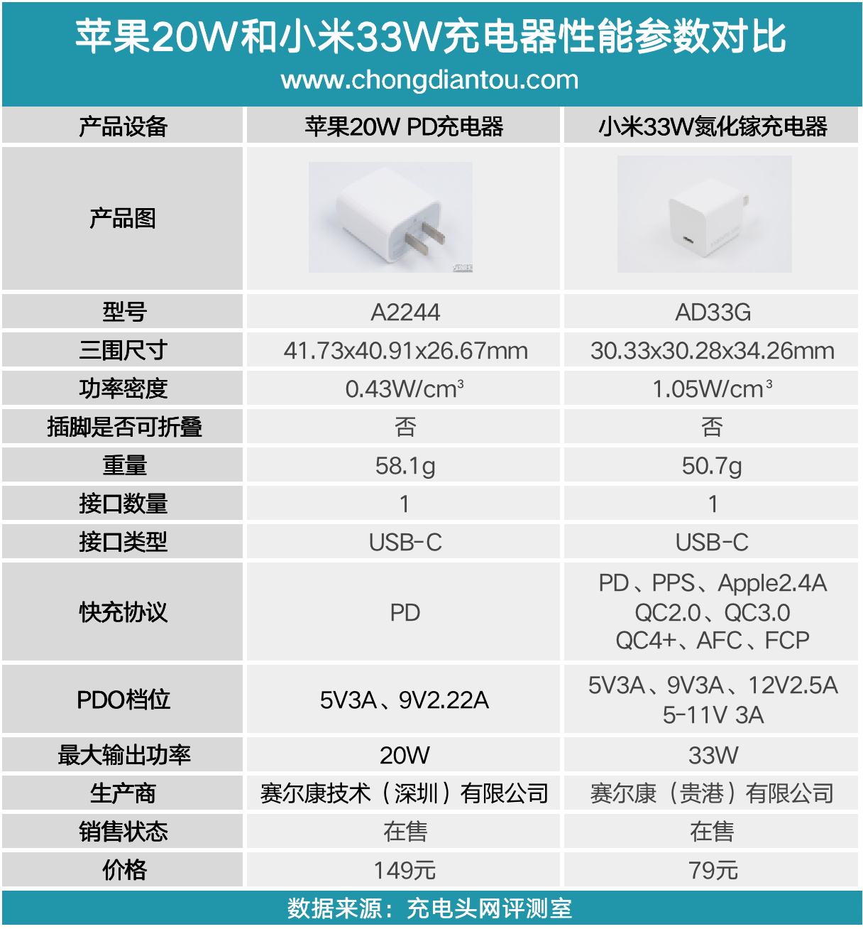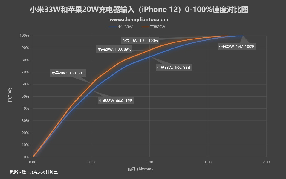 关注充电头网和关注快充的朋友相信都知道小米作为“最好的苹果充电配件厂商”在快充的布局上已经形成了不错的规模,而此次最新推出的33W氮化镓充电器不仅可以为iPhone 12快充,而且价格还比苹果20W充电器便宜很多。借此契机,我们就来聊一下价格相差一倍的两款充电器在性能上有何区别。
