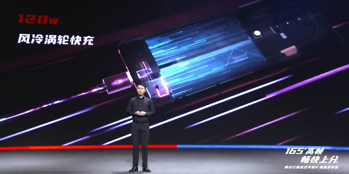 腾讯红魔游戏手机 6 Pro搭载红魔120W风冷涡轮快充系统,可在5分钟充入50%电量,17分钟充满100%,内部电池采用全极耳机构相比传统电池内阻降低60%,双电荷泵双电芯方案实现高效低阻低温升,满足超大功率快充需求提供出色的续航体验。另外还支持充电分离技术,在面对繁重的游戏过程,充电器可绕过电池直接给手机供电,避免温充电与游戏运算温升叠加,有效降低整体发热量,延长电池寿命并保障游戏运行速度。腾讯红魔游戏手机 6充电性能为66W风冷涡轮快充,采用容量更大的5050mAh单电池设计,15分钟充入60%,38分钟充入100%,兼容PPS、QC3.0、QC4快充协议。