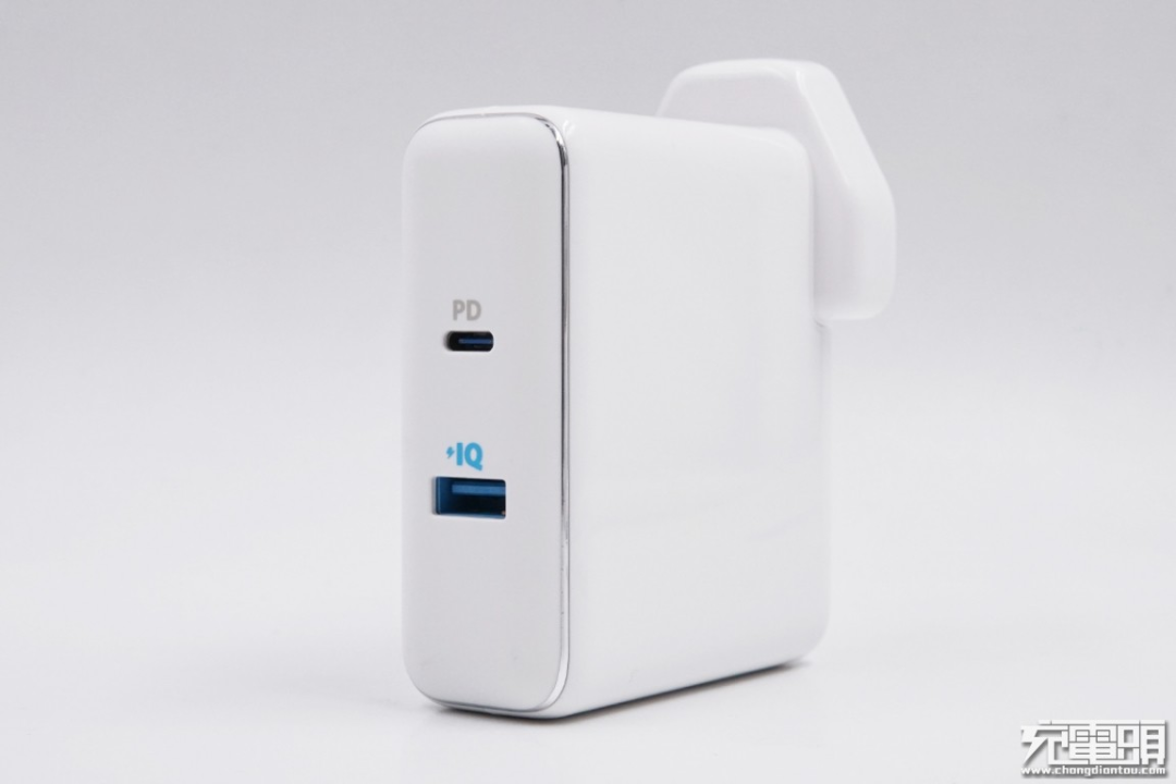 在氮化镓以及巧妙的结构布局下,充电器的功率密度达到了1.05W/cm³,非常小巧,给人一种过目难忘的感觉。