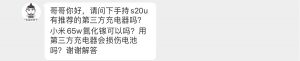 最近深圳的天气越来越热,夏季就要来了,像充电器这种本身就容易发热的产品,大家也要多体谅一下,大功率的头,热一点很正常,平时大家还是尽量选大品牌并且靠谱的渠道购买。好了,接下来我们进入正题,看看这周大家都发来哪些提问。