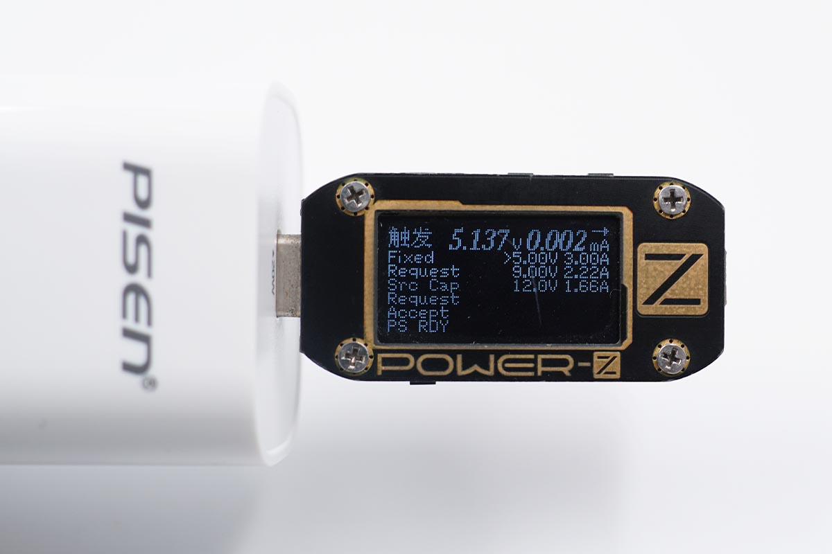 PD快充输出档位方面充电器支持5V3A、9V2.22A、12V1.66A三个固定电压档位,支持最高20W的输出功率。