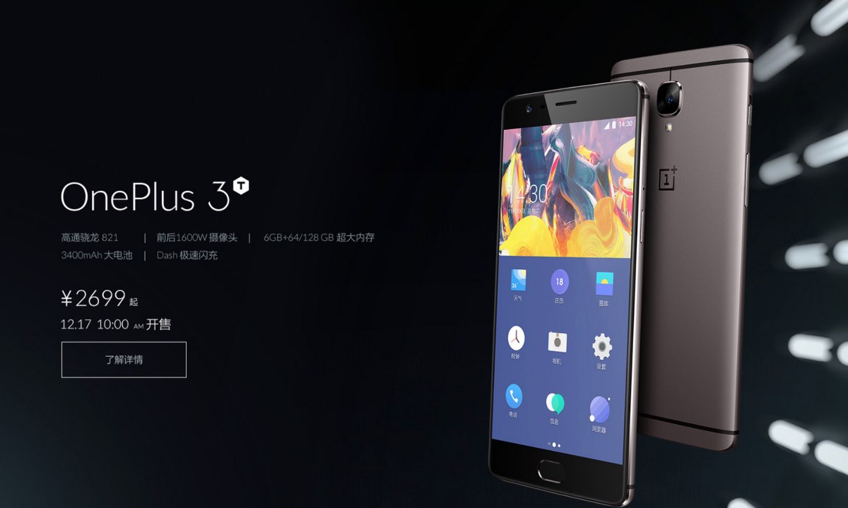 一加3的升级版,一加在2016年11月16日推出了一加3T,相较于一加3来讲一加3T属于小升级款,在电池容量上升级为3400mAh,充电接口为USB-C,支持20W DASH闪充,标配20W DASH闪充充电器。