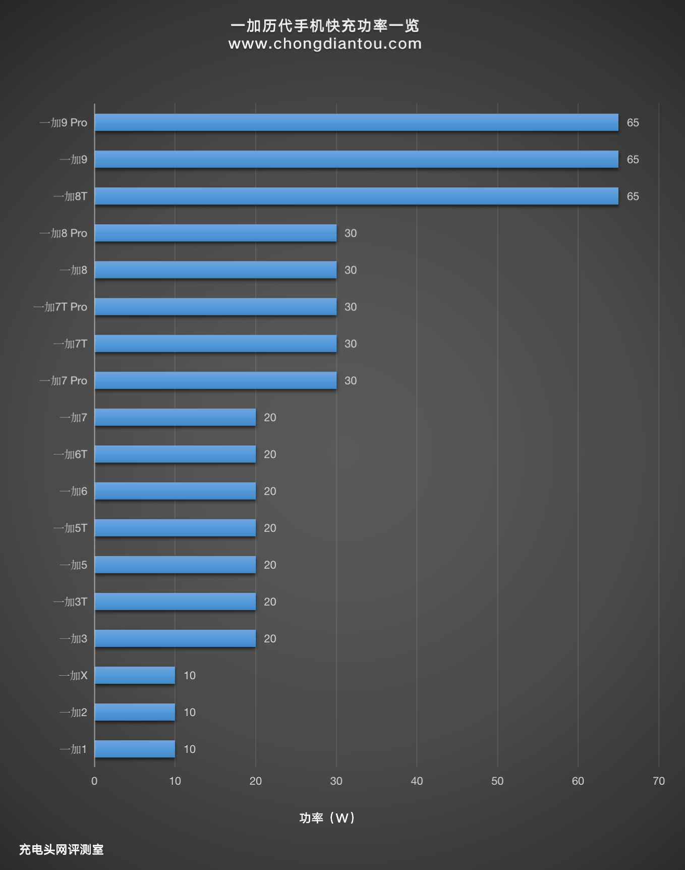 从这个柱状图上来看一加手机的快充功率基本是随着手机的更新进行升级的,从最开始的10W到20W DASH闪充再到30W Warp闪充最后是65W Warp闪充,快充功率升级幅度不断加大,可以看出一加对于手机的快充也越来越重视了。