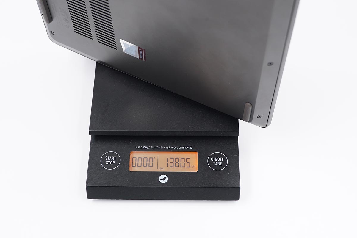 整个笔电的重量约为1380.5g,大约2斤多的重量。