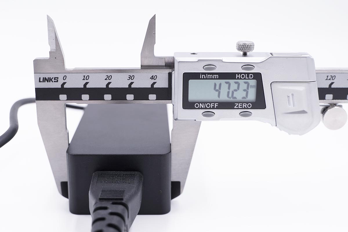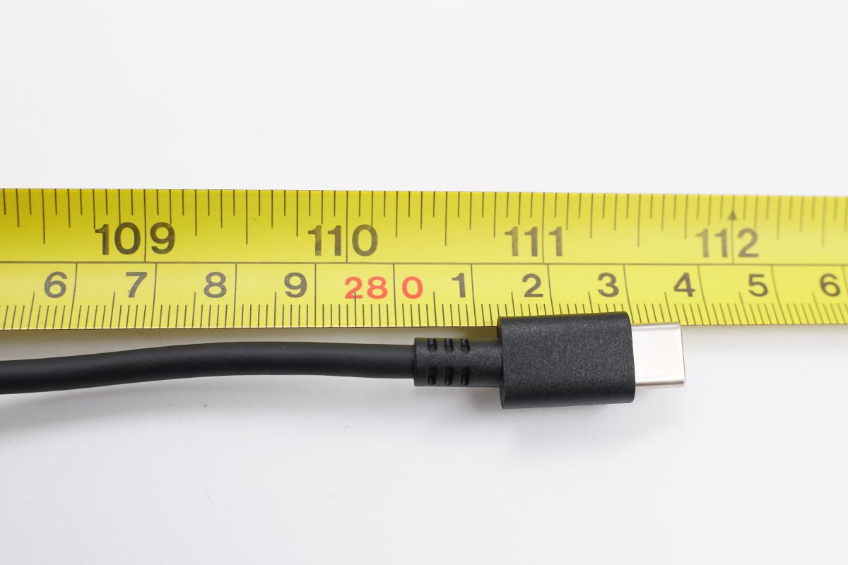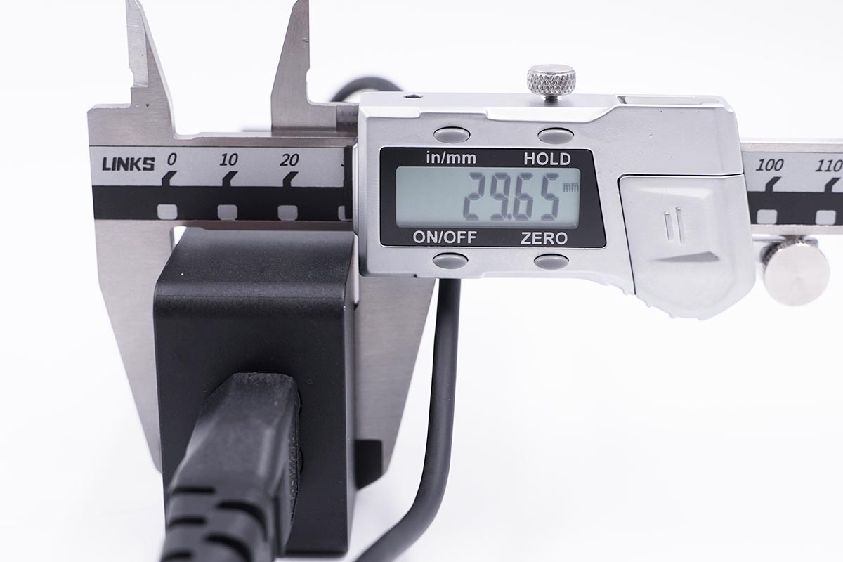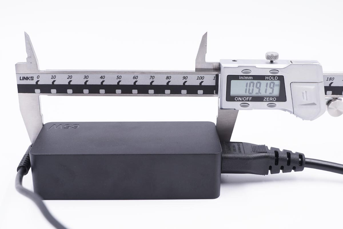 使用卡尺实测原装充电器不算连接线的长度约为109.19mm。