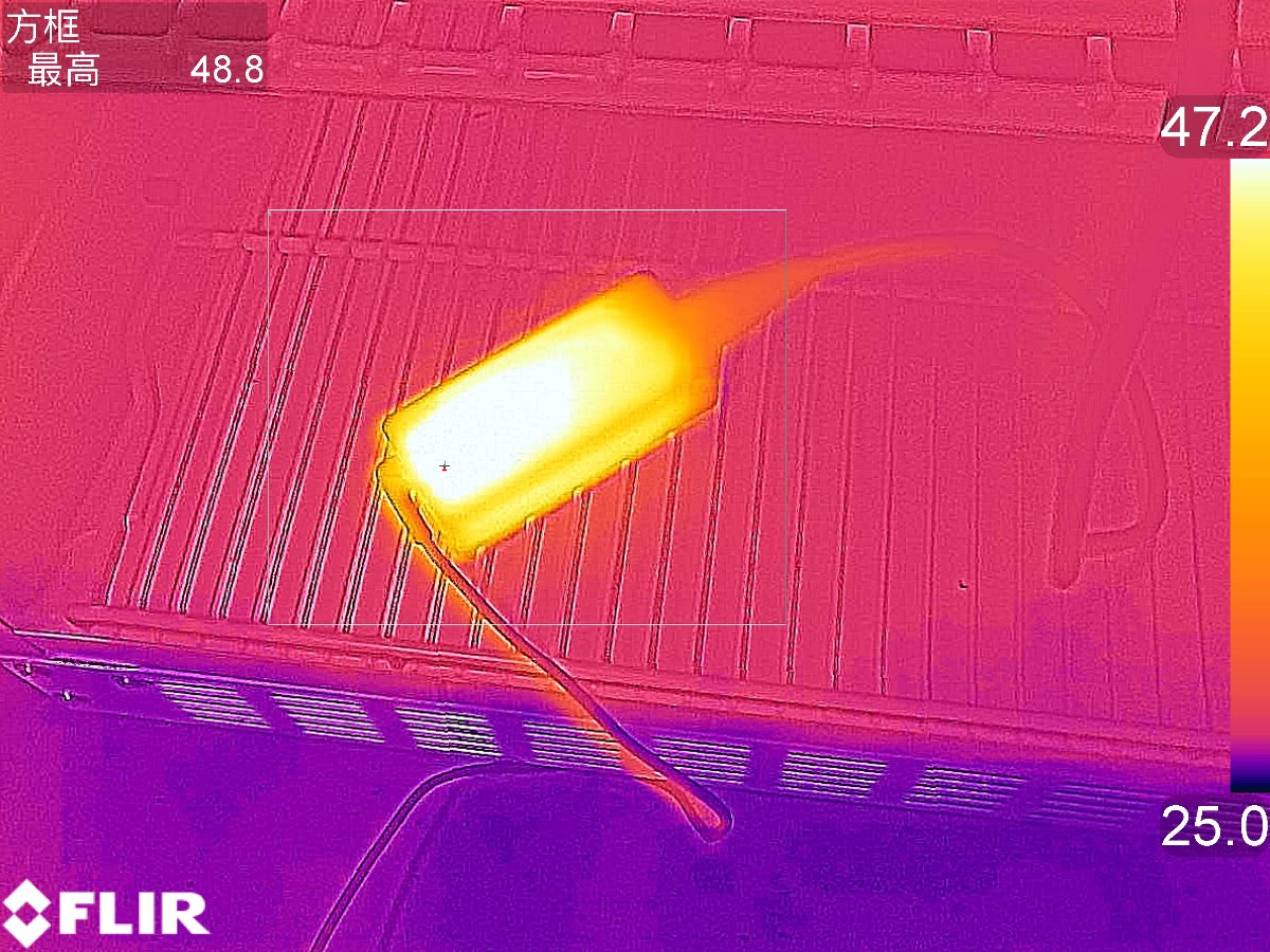 在充电器持续运行1小时40分后采集到充电器表面最高温度为48.8℃。