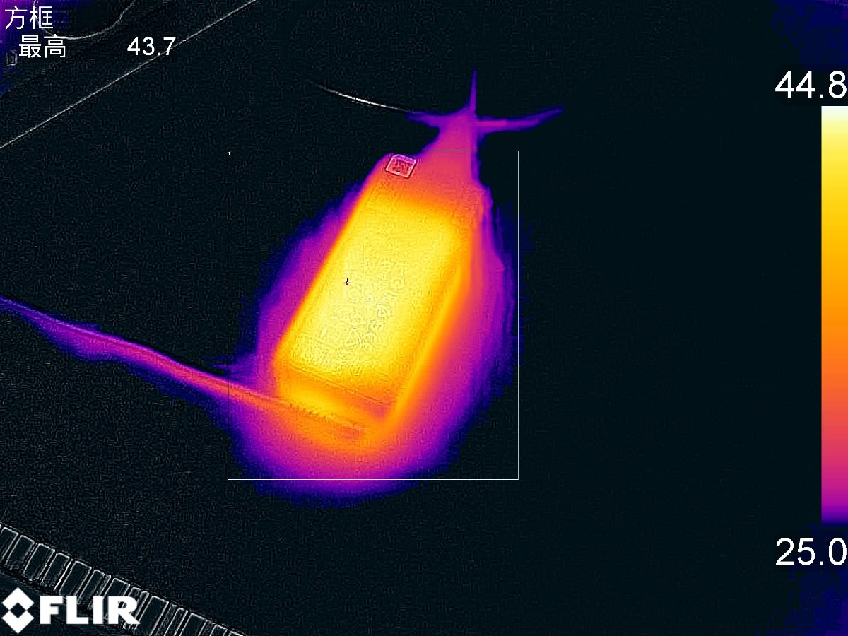 翻转至另一侧,充电器表面最高温度为43.7℃。