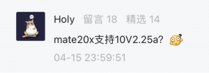 答:在刚发布的时候,华为Mate 20X与Mate20一样是支持5V4.5A 22.5W的快充,但是Mate 20 Pro支持10V4A 40W快充。现在来看属于比较早期的机型,由于我们实验室的机型为Pro版,所以实测有8V电压档位,功率在20W左右,购买需要注意。