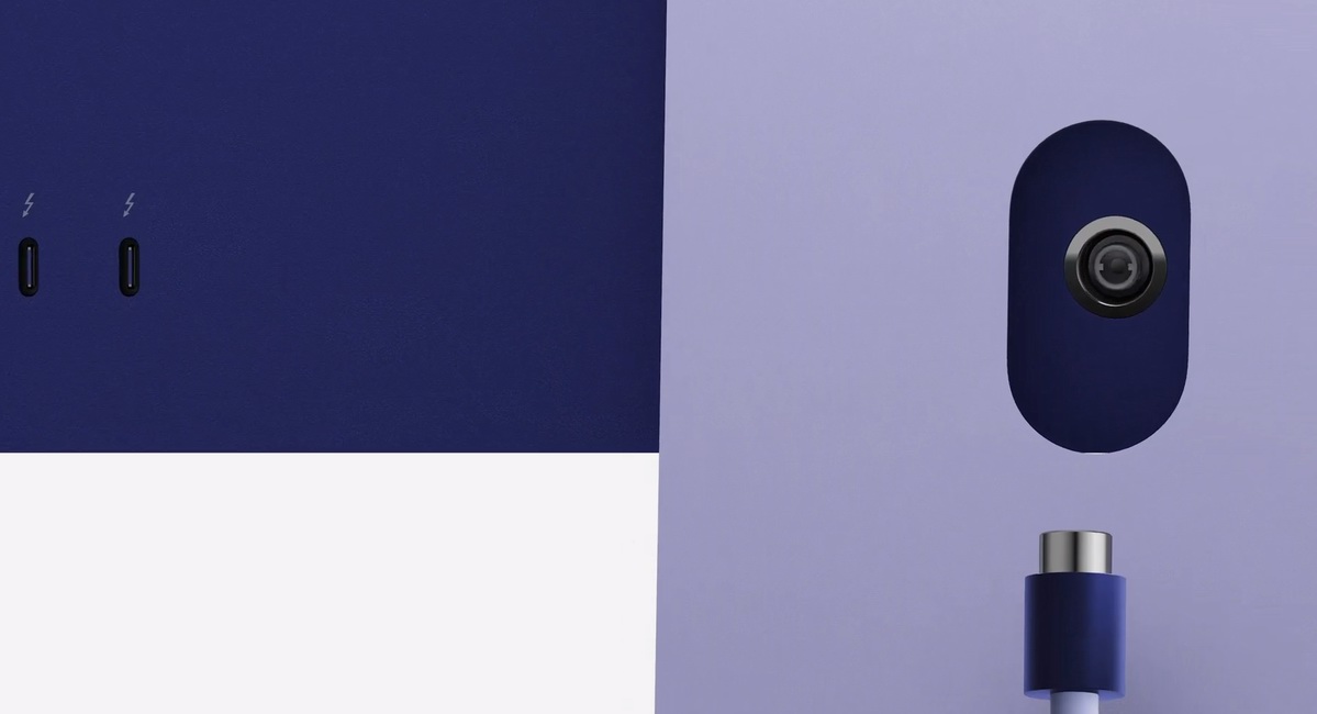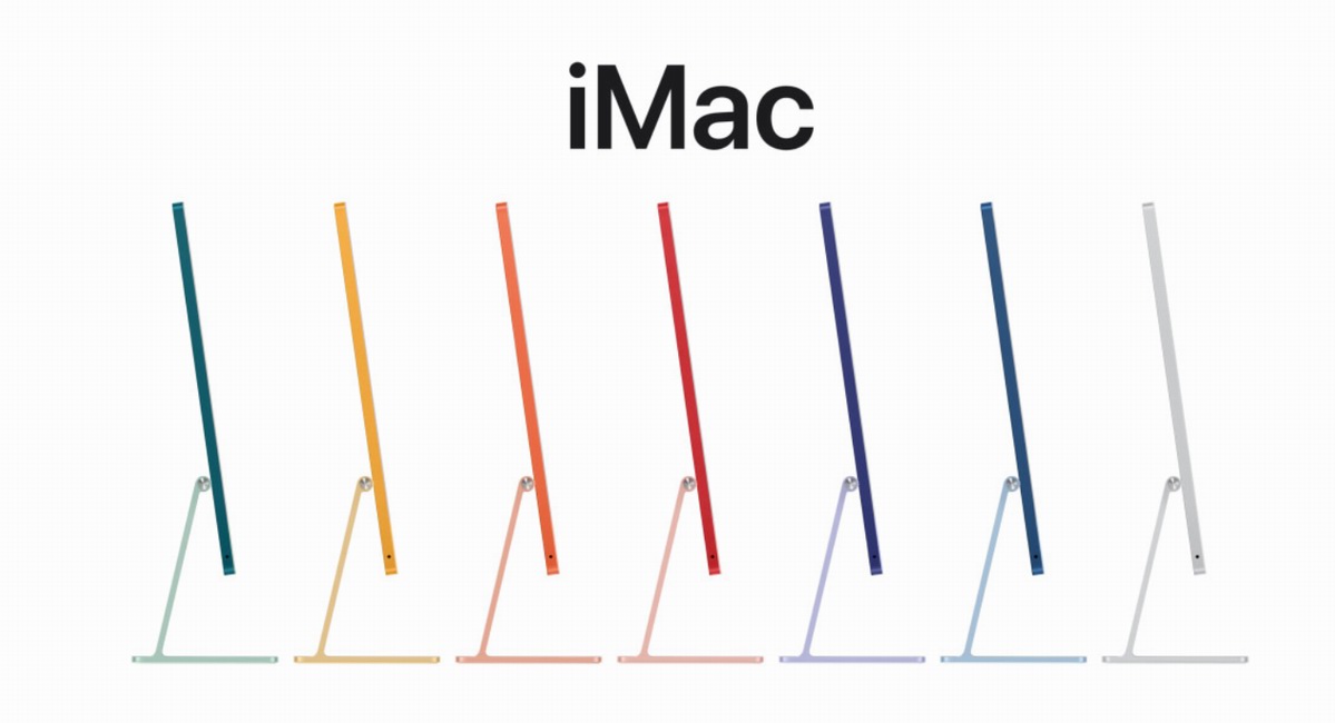 iMac采用高饱和色系搭配,共有蓝色、 绿色、 粉色、 银色、 黄色、 橙色、 紫色七种颜色可选,一改以往非黑即白的呆板观念。正面是24英寸4.5K视网膜显示屏,支持P3广色域技术10亿丰富色彩,500 尼特的高亮度,顶部还带有一个1080p FaceTime 高清摄像头。
