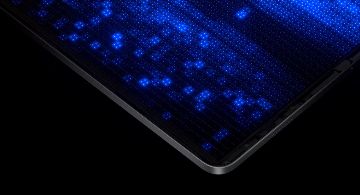 iPad Pro共有两款尺寸可选,12.9英寸与11英寸。12.9英寸搭载了mini-LED背光多点触控IPS显示屏,底部带有10000颗mini-LED背光精准分区控光,最高达2596个全阵列局部调光区,600尼特最大亮度。