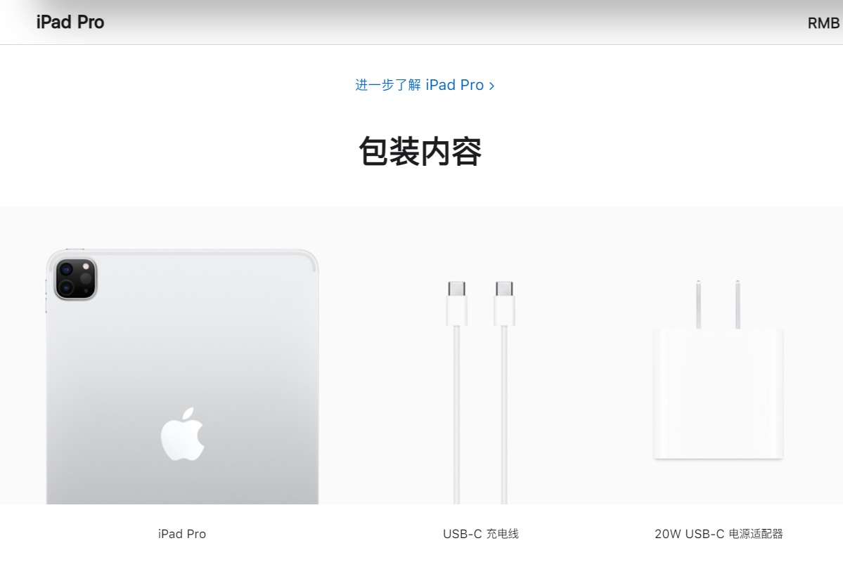 11 英寸iPad Pro内置 28.65 瓦时锂聚合物充电电池,12.9 英寸iPad Pro内置 40.88 瓦时锂聚合物充电电池,他们均配送USB-C线缆与20W USB-C充电器,用户无需额外掏钱购买充电器了,到手即用。