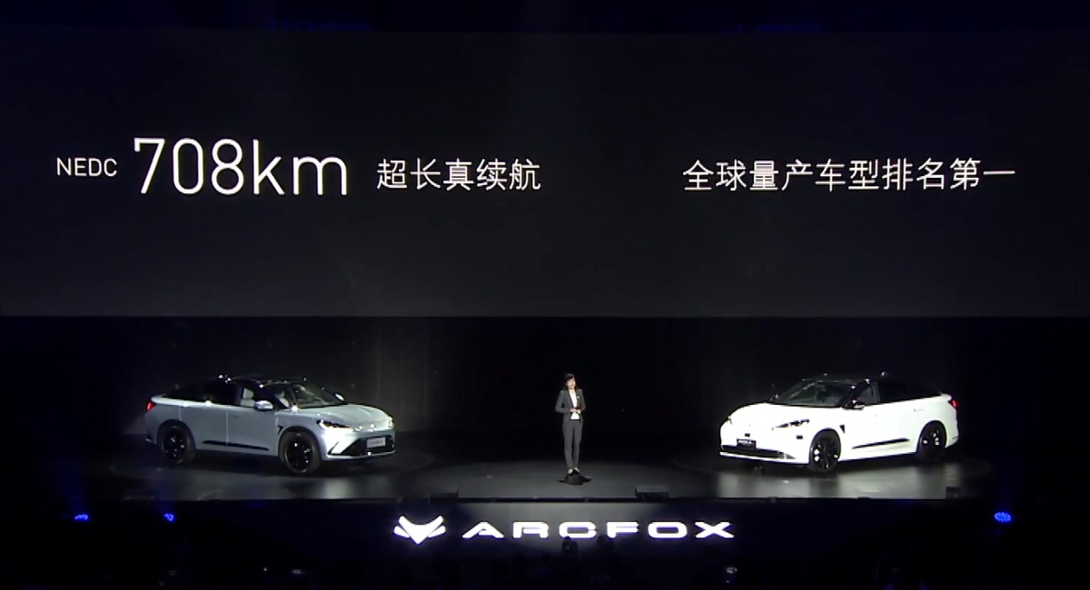 用户普遍对新能源汽车续航存在焦虑,极狐阿尔法S采用之智能恒温三元锂电池组,共有两种能量配置,分别是67.3kWh与93.6kWh,共推出了525S、525S+、708S+、603H四个版本,型号当中的数字表明其NEDC真实续航里程,最高达708km的续航让他成为全球量产车型排名第一,打消用户最大顾虑。