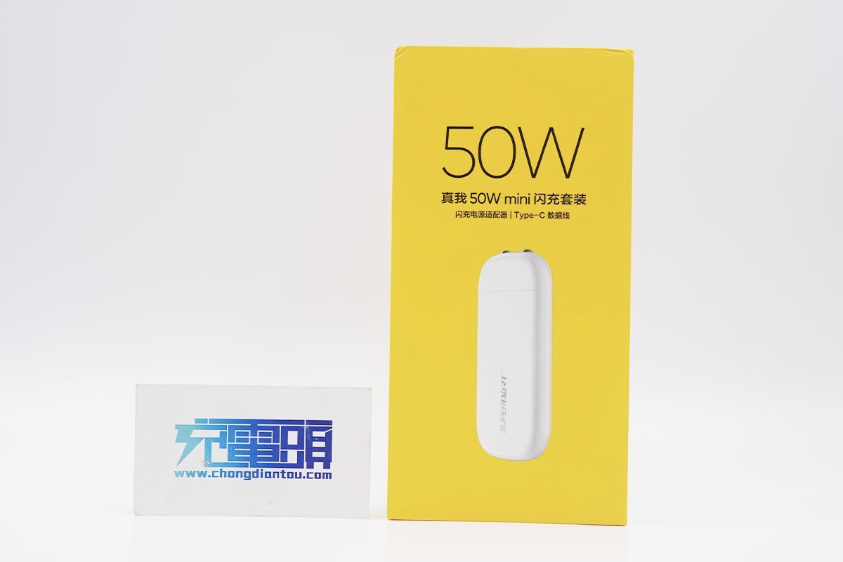 对,没错,就是图中单手拿着的这款,不过它的性能是和体积成反比的,下面就一起来看看realme的这款50W mini闪充充电器的性能表现吧。