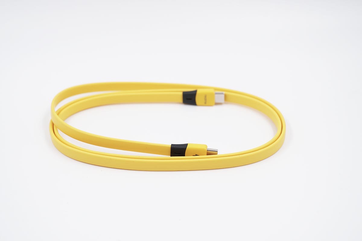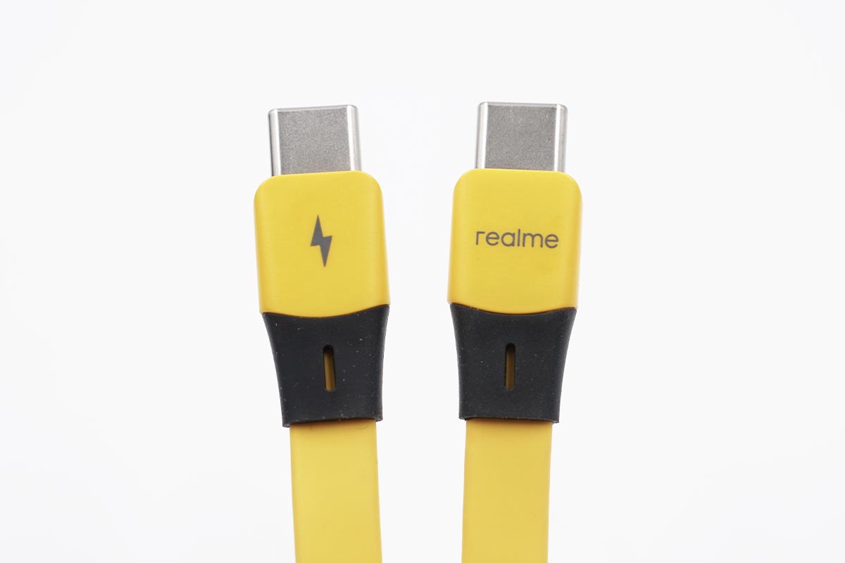 包装盒内附带的线材为面条线,黄色的线身,符合realme的产品格调。