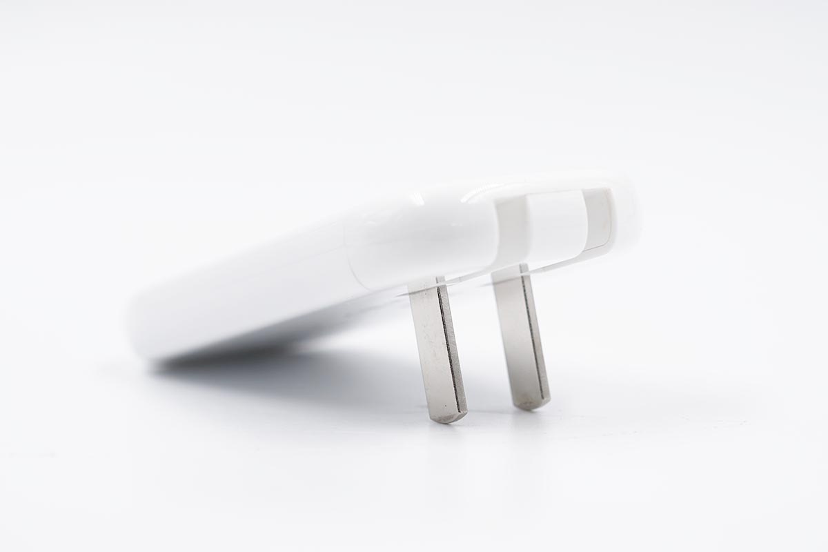 插脚部分可以折叠,不使用时利于收纳整理,出门直接丢进包里也不会划伤设备,同时也不影响充电器的一体性。