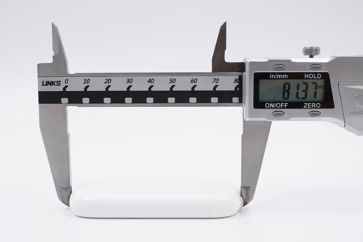 使用卡尺实测充电器的长度约为81.37mm。