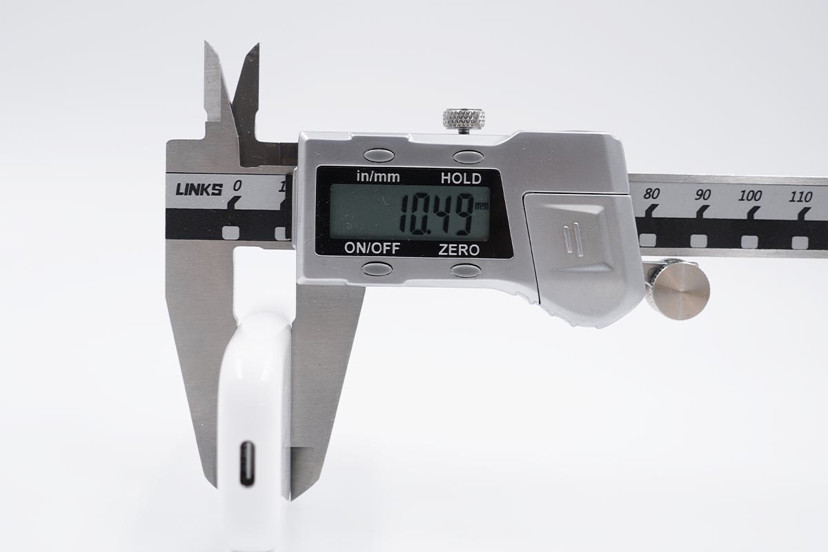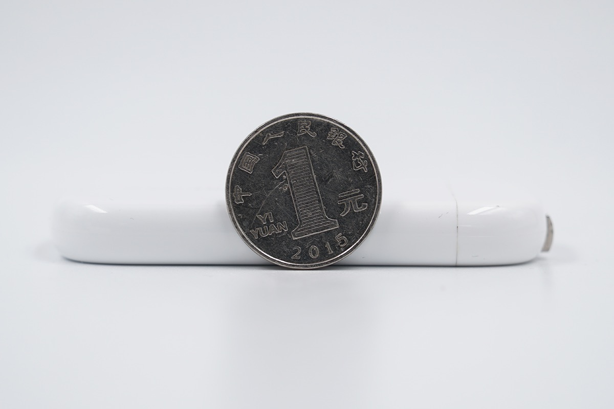 整个充电器的厚度比立着的一元硬币高度的一半还要薄。