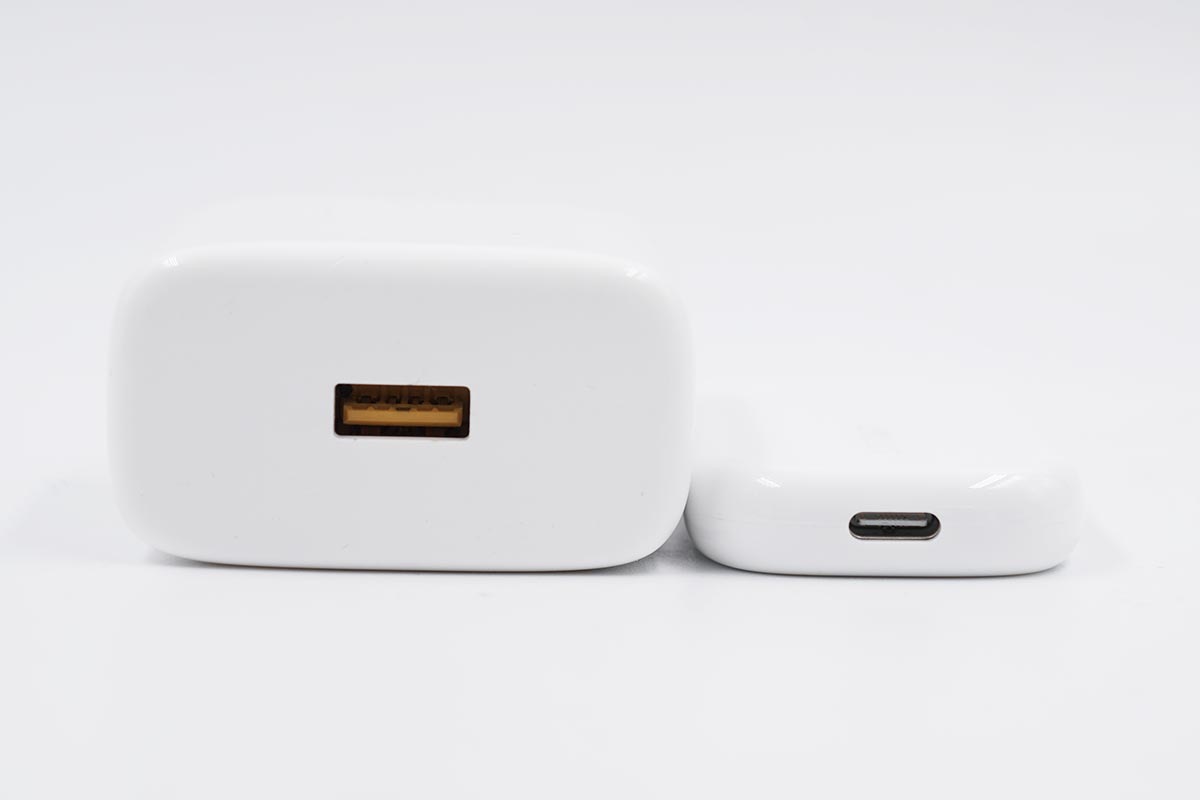 充电器采用单USB-C物理输出接口设计,接口位于扁平的机身侧面。